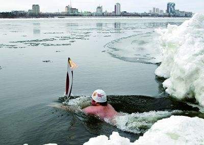冬泳的運動量要控制在安全有效的范圍內。如果在水里時間過短,沒有經受充分的刺激,就達不到鍛煉的效果。一般來說,剛下水時體溫迅速下降,會感到發冷,隨后皮膚發紅,體溫開始回升,感覺溫暖而舒適,這時離水上岸,一般會感到比較輕松適意。如果繼續接受冷水刺激,等到身體打寒戰、手腳發麻,就已經是運動過量的表現,這樣極容易損傷某些器官和組織。