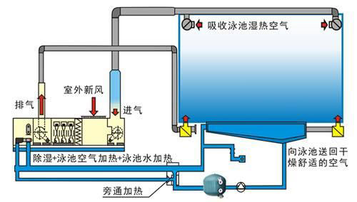 室內(nèi)泳池恒溫除濕熱泵流程圖