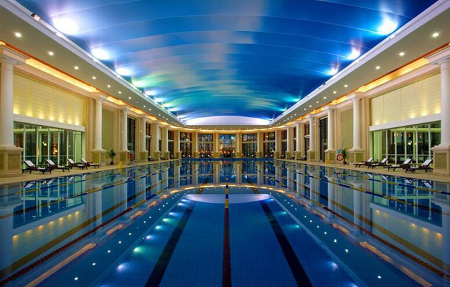 確保水質達標。因為大多數游泳池是露天的,每天有大量的泳客下水游泳,人的皮膚會給水中帶來許多的細菌和病毒,游泳池開放時間多半在夏季,加之空氣中的塵埃也容易落入游泳池中,因此游泳池的水必須進行凈化處理,才能保證泳客的身體健康。游泳池要定期進行游泳池循環過濾→游泳池消毒→游泳池吸污→游泳池澄清→混凝等程序的游泳池水凈化處理,避免各種意外事故的發生。同時,通過游泳池的水凈化處理也能進行水的循環利用,節約資源,保護環境。
