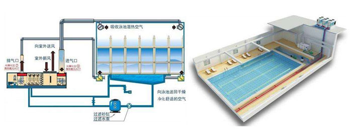 一、室內恒溫游泳池水處理應用熱水泵原理