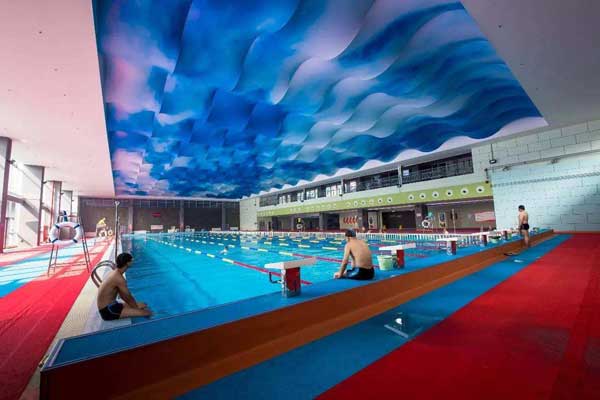 (4)花樣游泳池:由于池子面積較小,規(guī)定動(dòng)作可在跳水池中進(jìn)行,自選動(dòng)作可在游泳池中進(jìn)行。平面尺寸為30m×20m或12m×12m,水深保證≥3m。其他部位≥2.5m。
