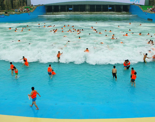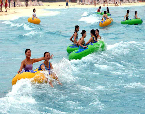 真空造浪又稱海嘯造浪,使力傳感系統進行采集真空,以瞬間控制真空筏門開啟進行造浪?梢栽1.5米的連續浪和最高3米的巨浪,真空造浪池的面積一般在5000~20000平方米之間,可以一次容納幾千人,突然一個一個巨浪撲面而來,瘋狂壯觀的場面令人屏息,甚至連旁觀者都感受到那份刺激。