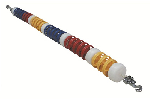 本泳道線適合各種一般的比賽或訓(xùn)練,一般由白色圓形浮子將紅色,藍(lán)色,黃色的風(fēng)車型的浮子間隔排列。即美觀,又顯眼。浮子的材質(zhì)是由高密度低壓聚乙烯制成,質(zhì)量保證,風(fēng)扇葉狀的浮子助于消波,具有很好的防浪效果。